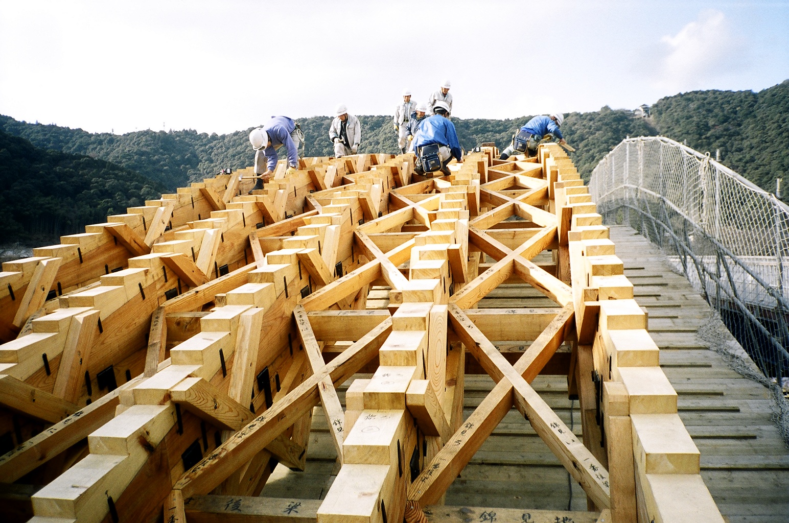 錦帯橋は木造のため風雨による腐朽は避けられず、創建から修復と架け替えを繰り返すことで、人々の往来を支えながら創建当時の威容を保っています。現在の錦帯橋は2001年から2004年に架け替えられたものですが、20年以上経過し、安全に人を渡し続けるために修復が必要な時期にきています。