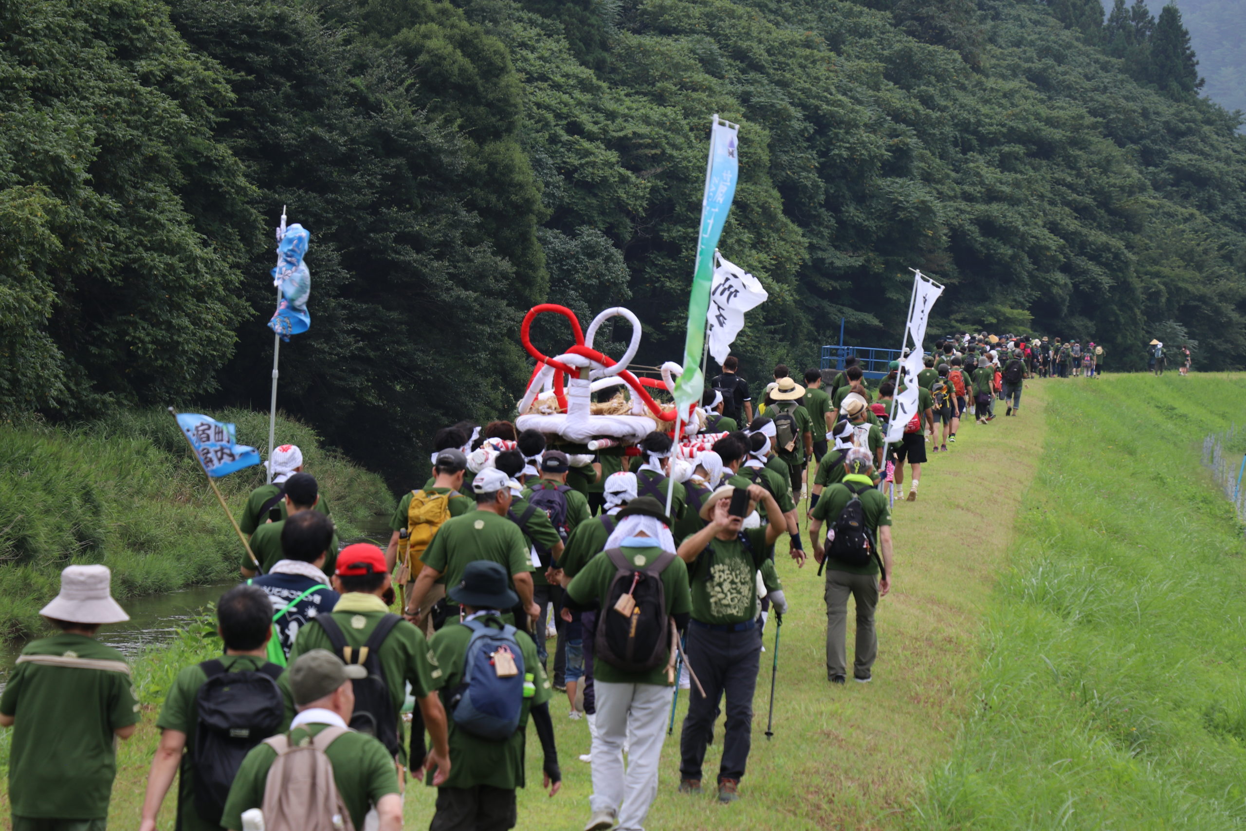 昔人に親しまれわらじで歩いた“山中七ヶ宿街道”を舞台に、のんびりと自然と人とのふれあいを通して11kmの道のりを歩くイベントは今年で37回を迎えます。道中には町民の方が漬物や焼き魚などを用意しておもてなし。準備期間は約半年と小さな町では大掛かりな一大イベントですが、継続していきます。